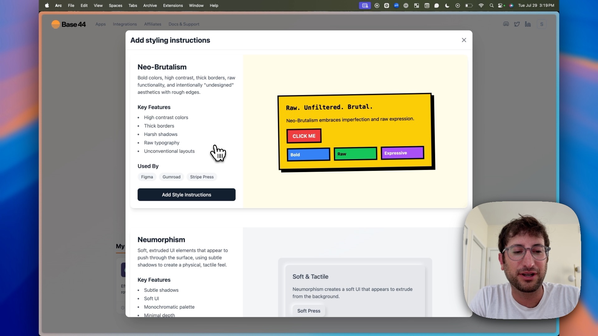 Base44 gives you the ability to choose a style as seen in the picture below: